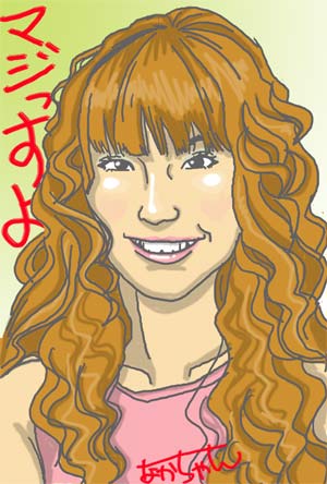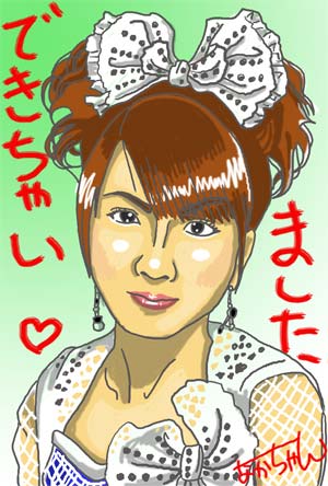 しょこたんがネットで自分の似顔絵を見ているとの情報があり やば!!前描いたのひでぇ絵だ!! 描き直しだぁ!!ということで描いた(前のは即効削除) いつかは見てくださることを祈りつつ・・・・ この人の似顔絵難しいんだよねー